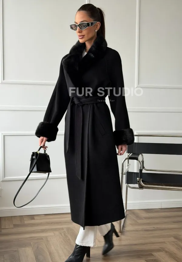 Черное пальто с мехом норки 102666