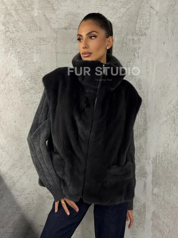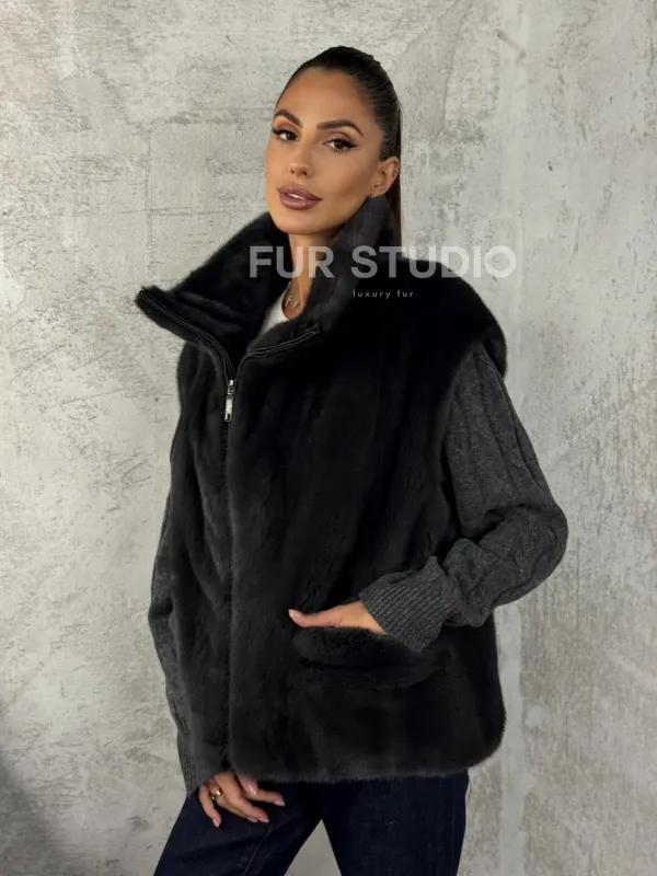 Норковая жилетка - графит 102427