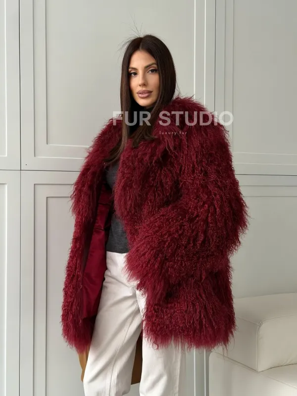 Шуба из ламы PREMIUM - бургунди 102814