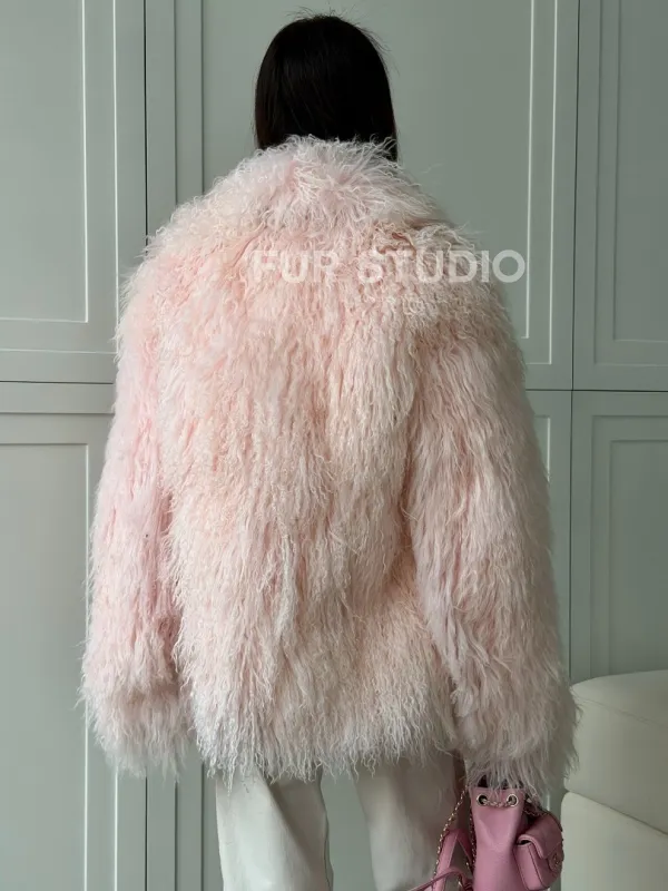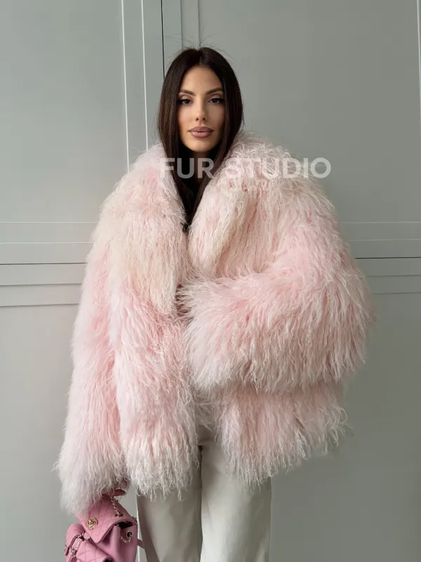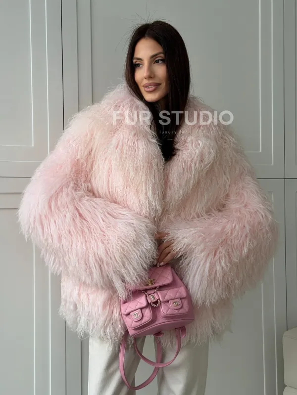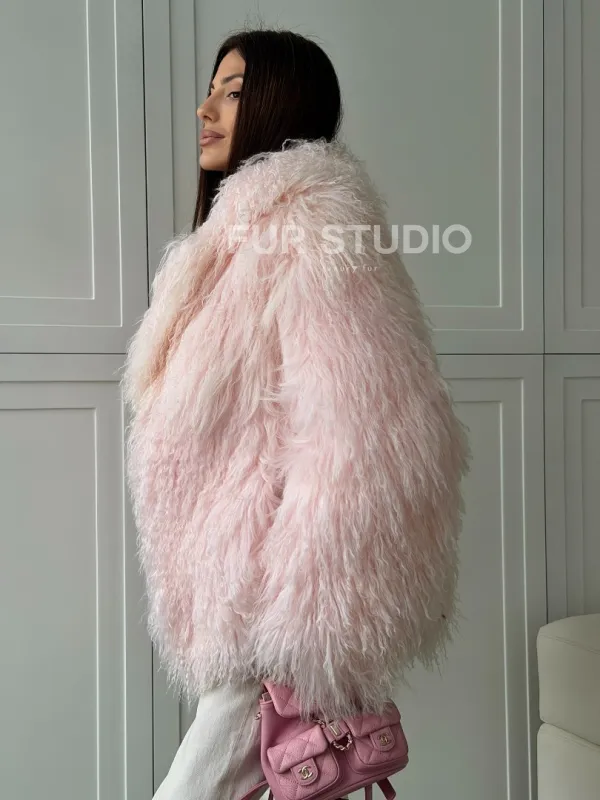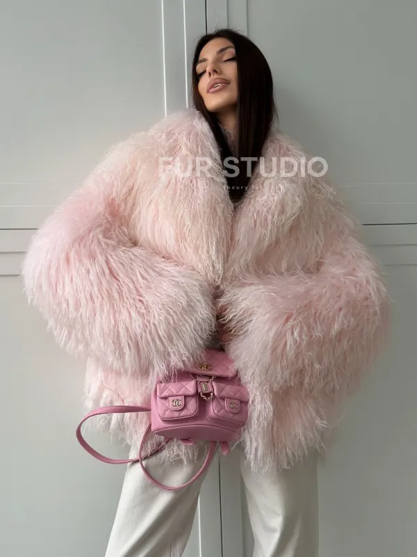 Шуба из меха ламы - цвет розовый 102813